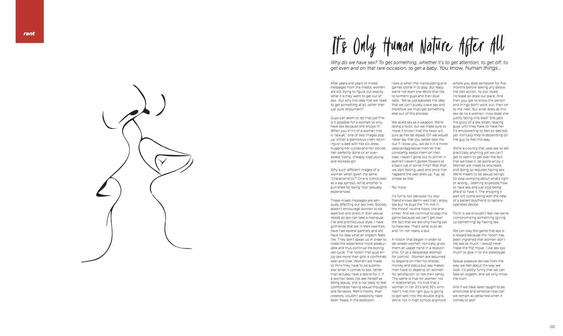 These mixed messages are seriously affecting our sex lives. Society doesn’t encourage women to be assertive and direct in their sexual needs so sex can take a manipulative and promiscuous style. I have girlfriends that are in their twenties, have had several partners and still have no idea what an orgasm feels like. They don’t speak up in order to make the experience more pleasurable and thus continue the boring old cycle. The notion that guys enjoy sex more than girls is confirmed over and over. Women are made to think they have to be submissive when it comes to sex, rather than actually have a desire for it. If a woman does not see herself as being sexual, she is not likely to feel comfortable having sexual thoughts and fantasies. Men’s moms, their creators, couldn’t possibility have been freaks in the bedroom.